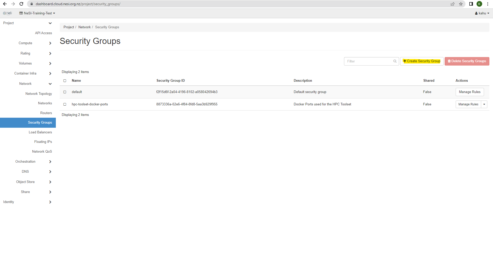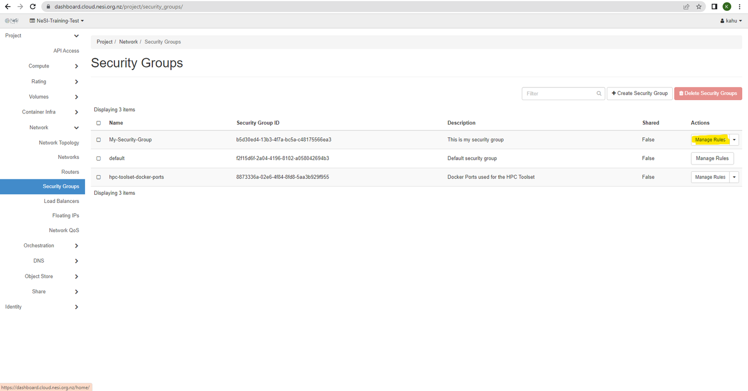 Creating a new Security Group¶