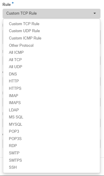 We have a few ways of adding new rules to the security groups, either with predefined rules or customs rules.