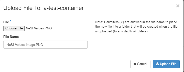 The URL that currently works should you wish to view/download a file from object storage looks like the following https://object.akl-1.cloud.nesi.org.nz/CONTAINER_NAME/FILE_NAME