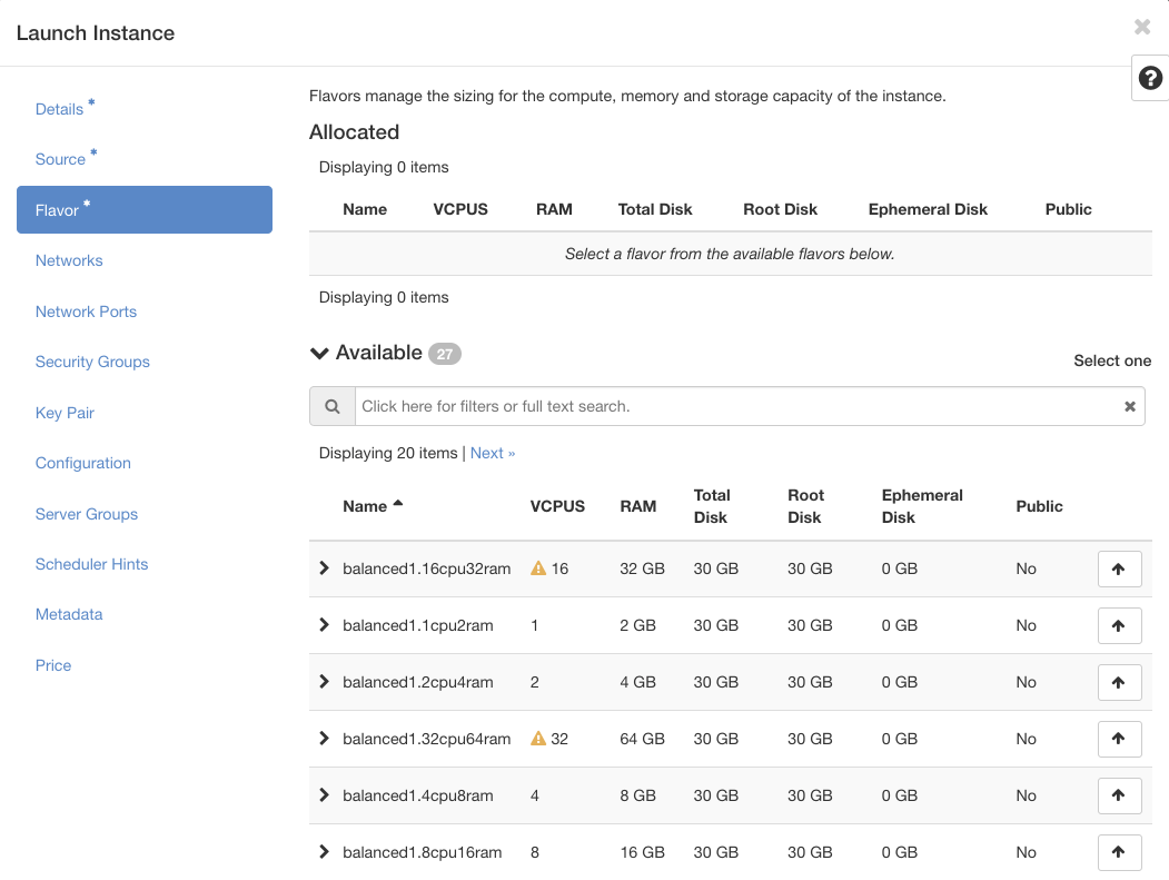 We are providing a range of pre-defined compute flavors for RDC users. Flavors follow the naming convention: