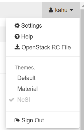 You are also able to download the Openstack RC file from the top-right corner where your login details are display as shown below: