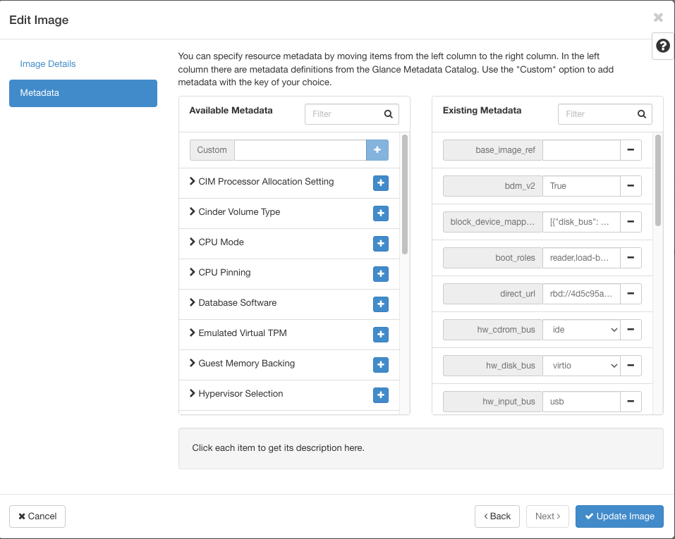 To help others (and your future self), we recommend adding metadata to your images to describe the starting image, their contents (if anything else was added) as well as any other description fields that you feel pertinent.